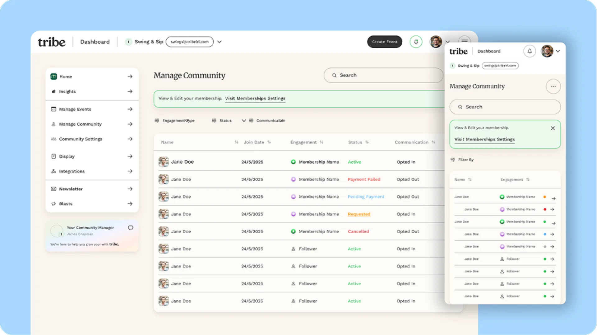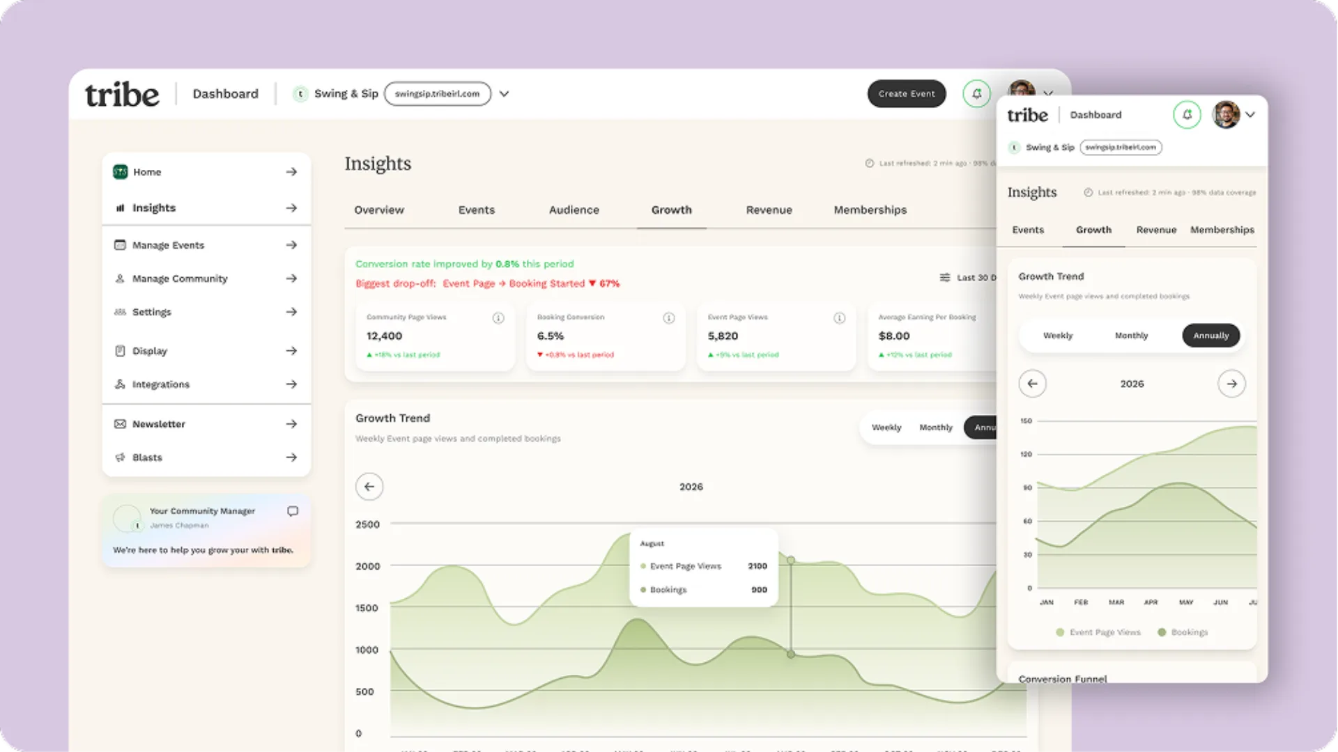 Tribe is a community platform helping organisers run memberships, events and payments in one place. As Product Lead, I shaped the strategy, UX and UI from the ground up, turning a tangle of workflows into a product organisers actually enjoy using, and members keep coming back to.